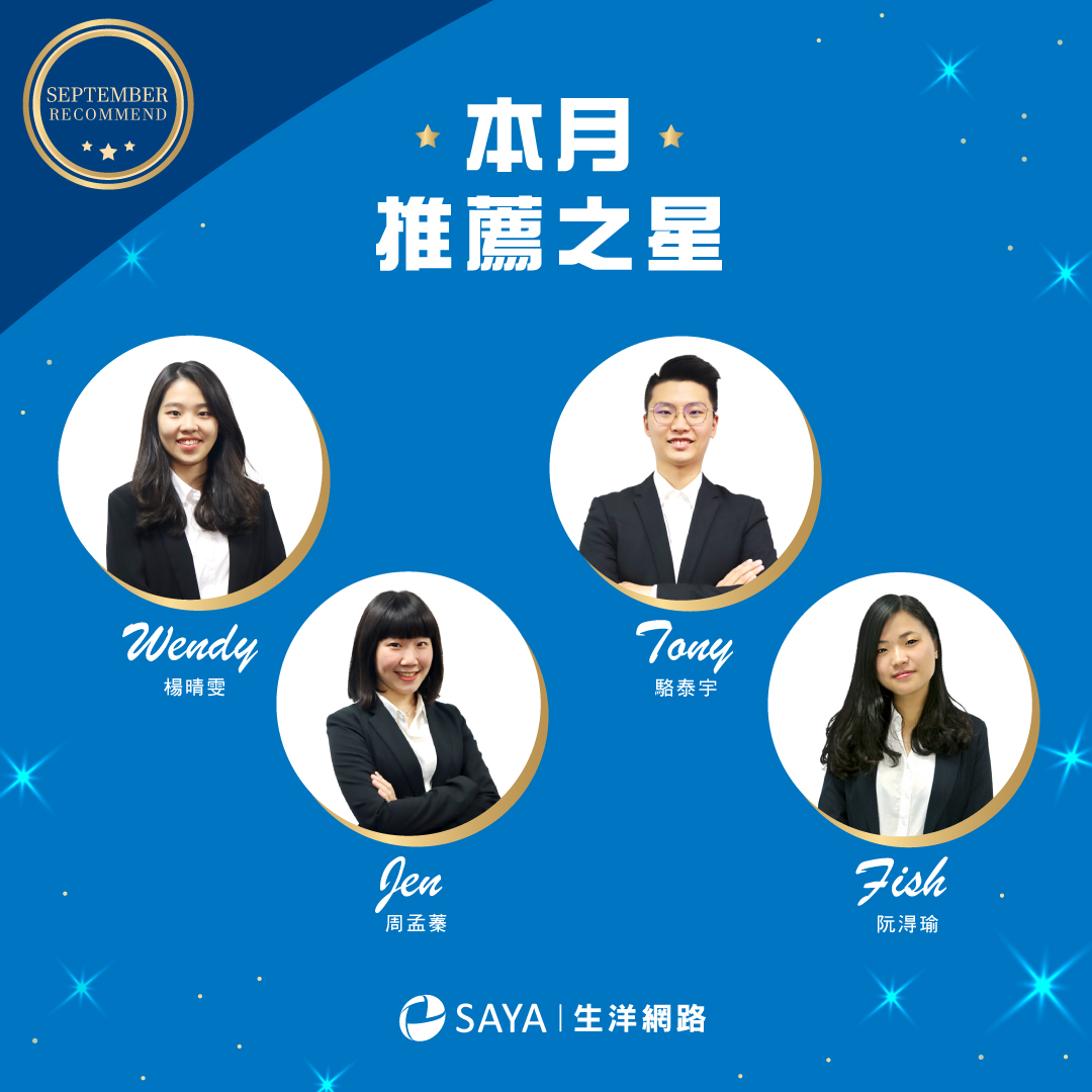 透過每月的客戶滿意度調查,我們將遴選出得到最佳推薦的行銷顧問成為「本月推薦之星」