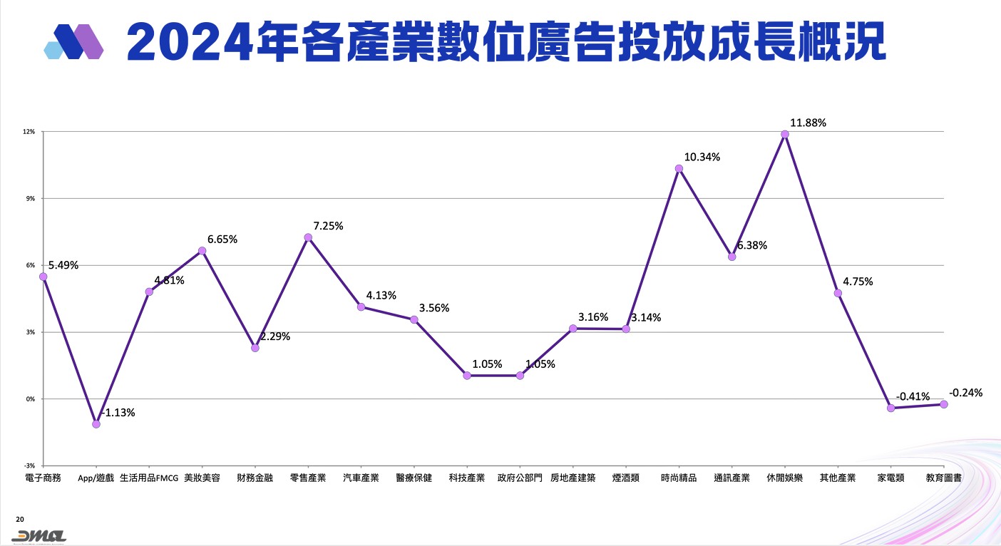2024年,關鍵字廣告以9.97%的高成長率脫穎而出,在廣告總量上也位居前三。這部分受惠於旅遊娛樂產業復甦與AI廣告的加成。然而,隨著AI聊天工具普及,用戶可直接獲得整合性回覆,對傳統搜尋依賴可能下降。這意味著,行銷人除了要用關鍵字抓住消費者,也需思考如何讓品牌內容被AI工具與機器「識別」,才能在新興資訊獲取模式中保持優勢。