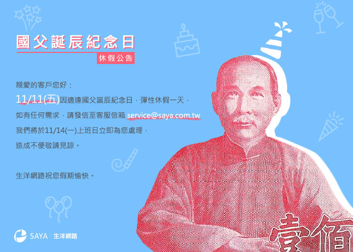 11/11(五)因適逢國父誕辰紀念日彈性假期休假一天