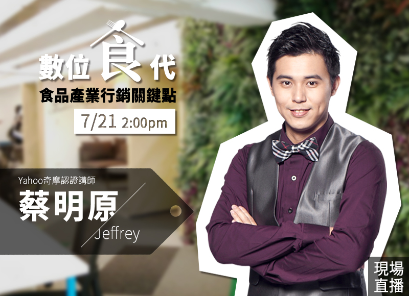 本週7/21(五)下午2:00,生洋網路行銷經理,同時也是第五屆Yahoo奇摩認證講師──蔡明原 Jeffrey,