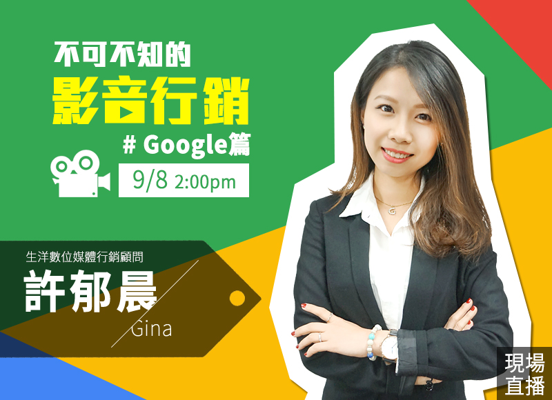 因此本週9/8(五)下午2:00,生洋網路數位媒體行銷顧問──許郁晨 Gina,