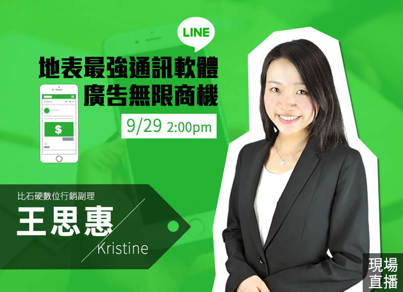 本週9/29(五)下午2:00,比石硬數位行銷副理──王思惠 Kristine,