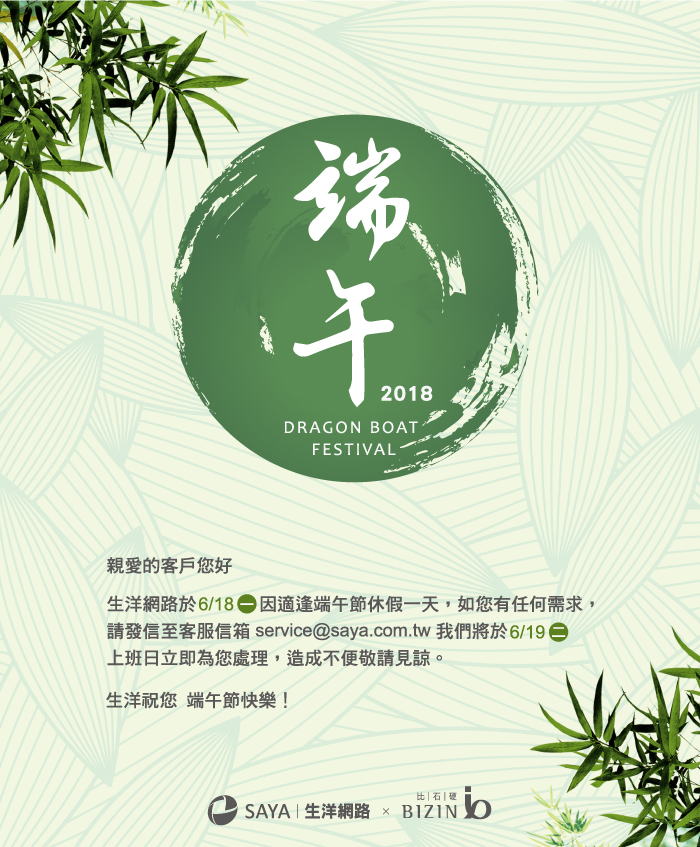 6/18(一)因適逢端午節休假一天