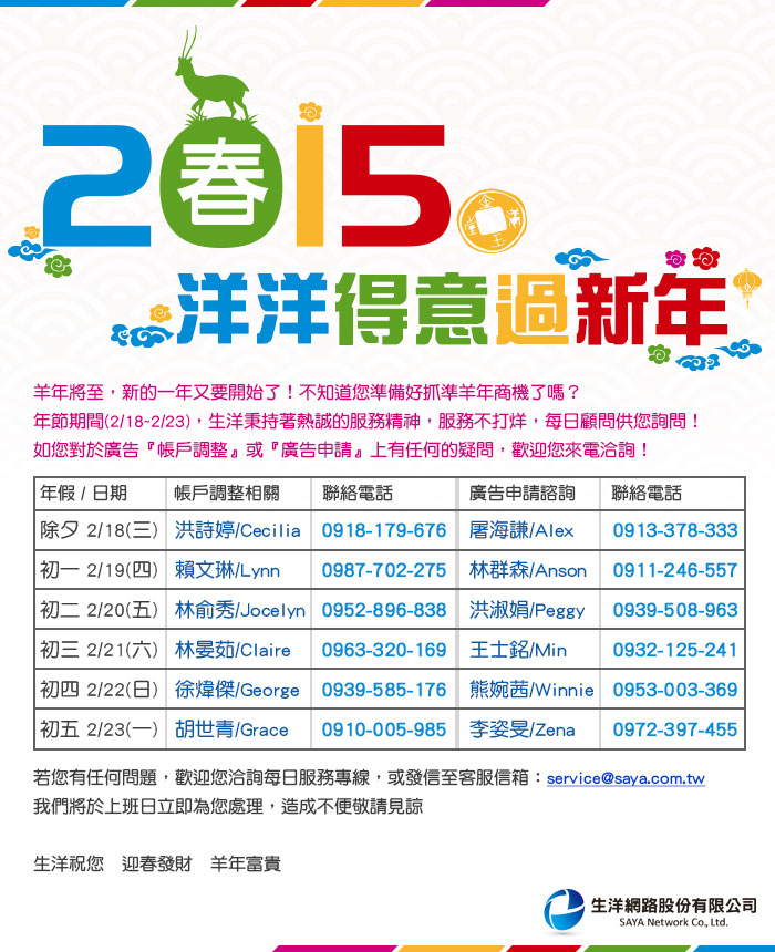 生洋網路全體同仁祝您春節快樂,洋洋得意!!