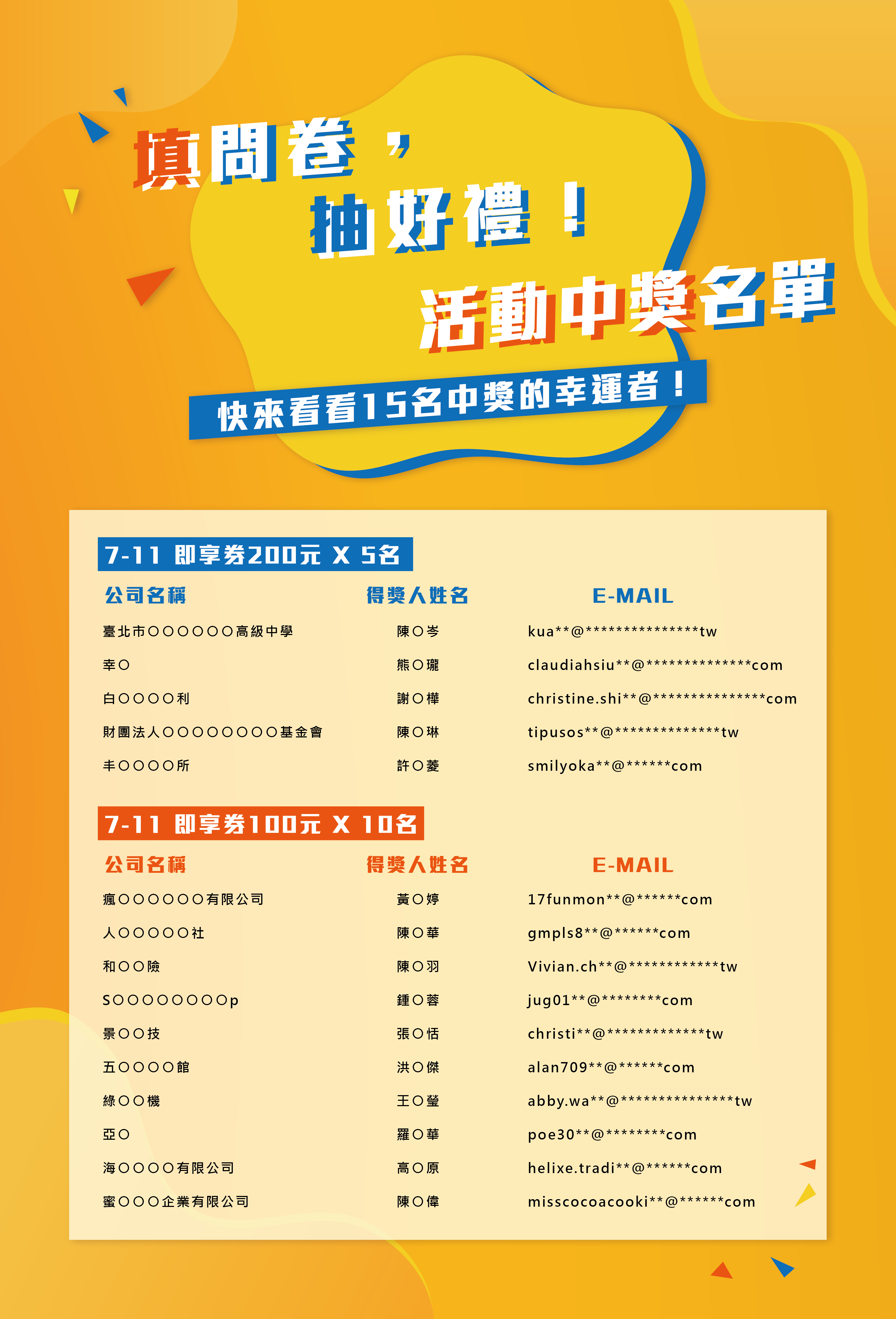 屆時再麻煩中獎的廣告主們查看一下E-MAIL有沒有收到信囉!