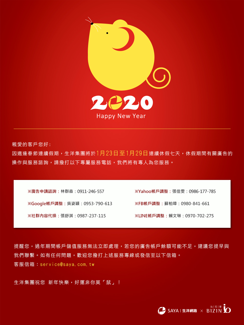 生洋集團祝大家新年快樂,好運非你莫「鼠」!