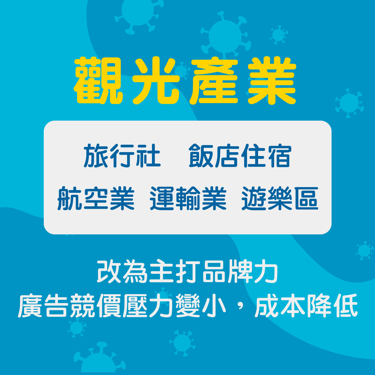 比方關鍵字廣告,觀光業在此時可以用更便宜的價格爭取到更多流量,提升廣告排名,累積訪客名單