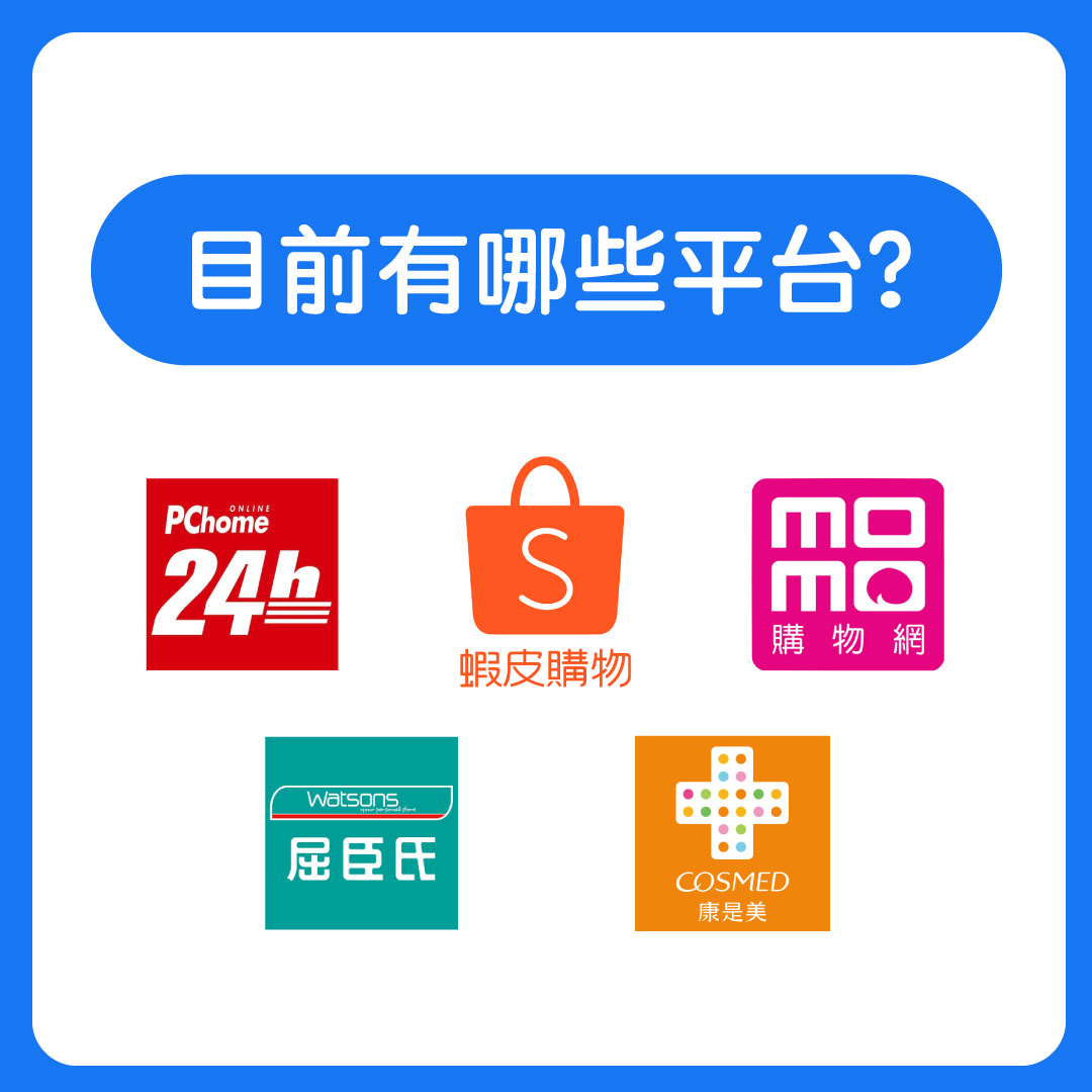 PChome 24h、蝦皮購物、MOMO、屈臣氏、康是美