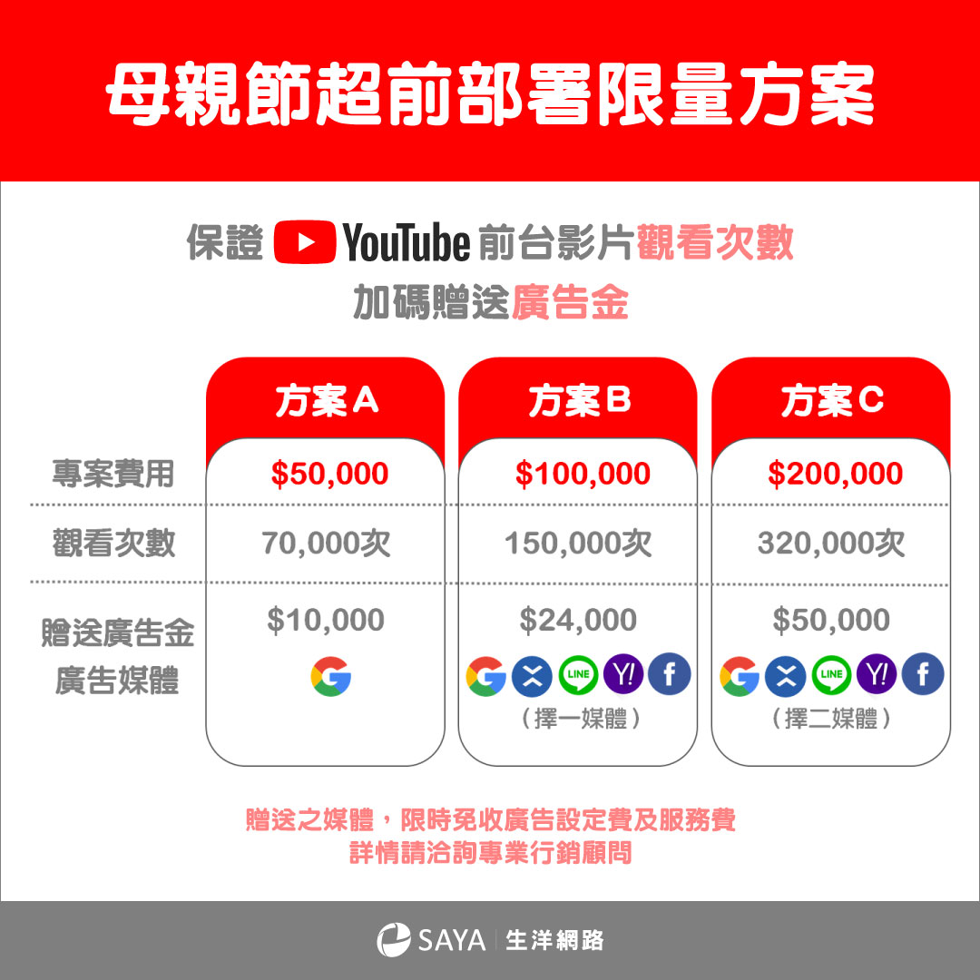 就趕快來看看我們的【母親節限量YouTube方案】吧!