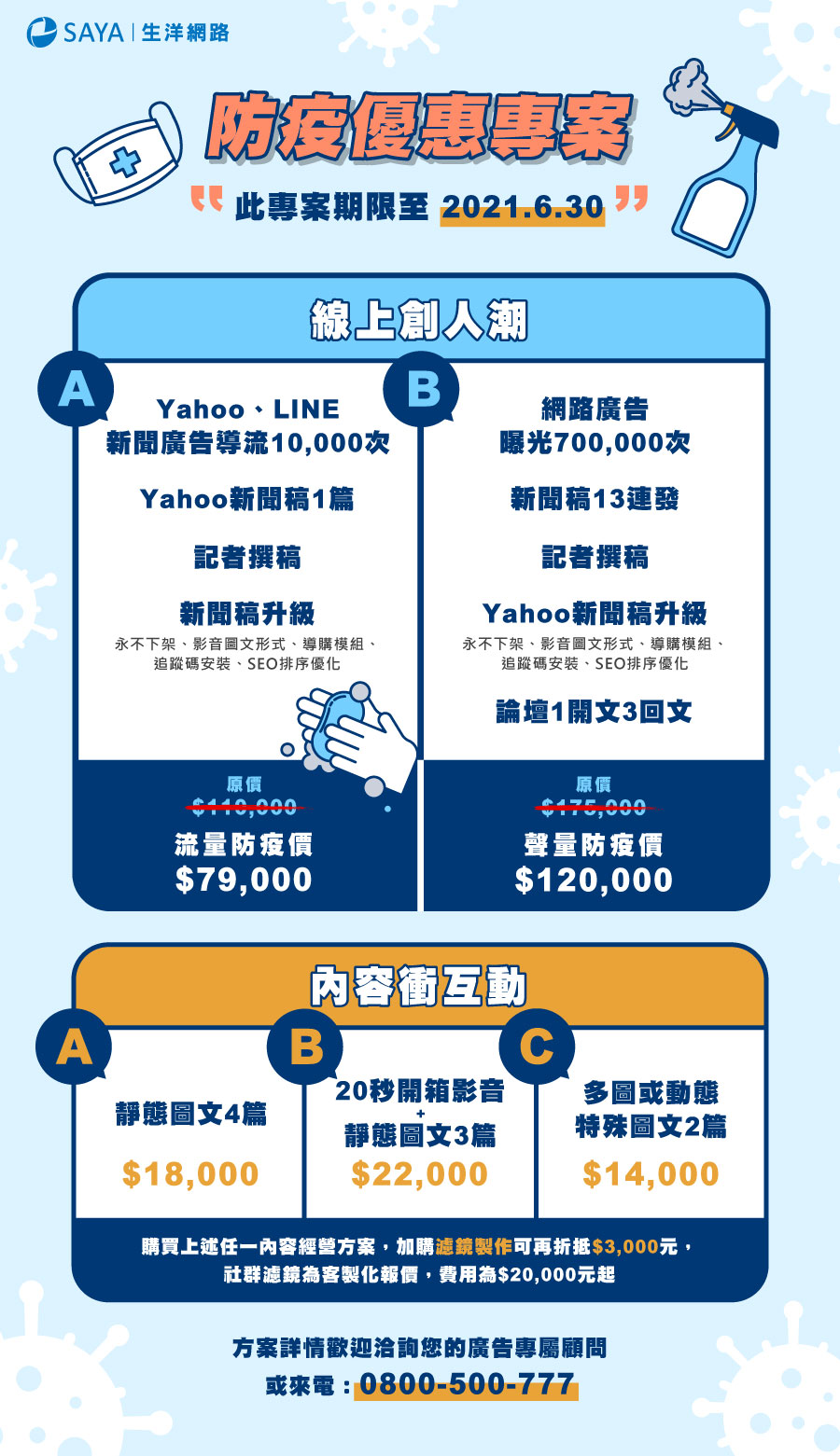 生洋集團推出防疫優惠專案,讓你線上創人潮、內容衝互動,