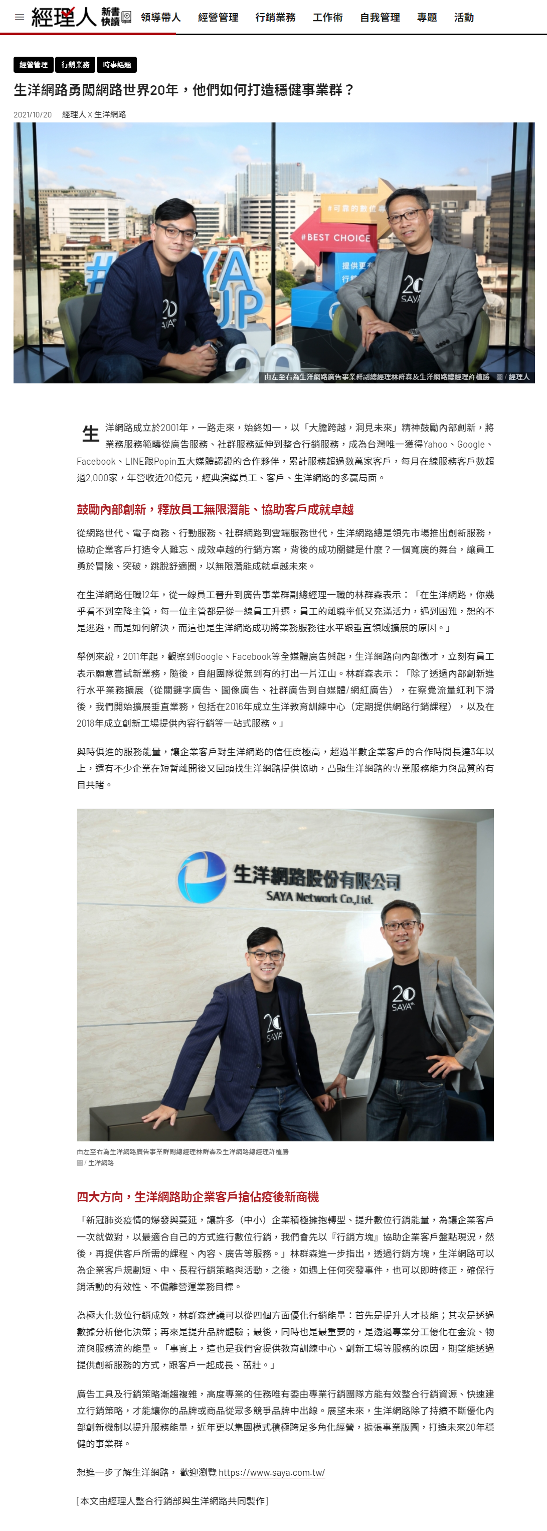 【經理人】生洋網路勇闖網路世界20年,他們如何打造穩健事業群?