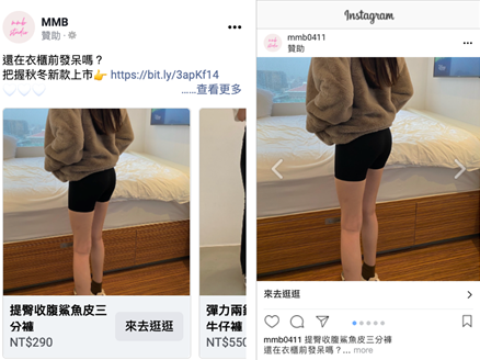 如果沒有適合的影片素材可以呈現商品,也可以參考下方左圖, Model秀出整體穿搭並展現衣服的正、反兩面,對比右圖更能讓消費者買單。