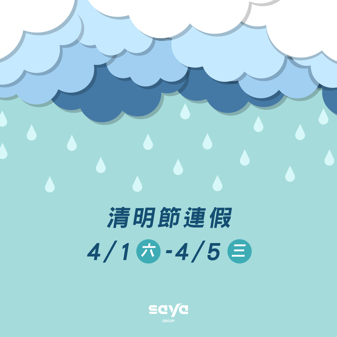 因適逢清明節連續假期,生洋集團將於4/1(六)至4/5(三)連續休假五天,