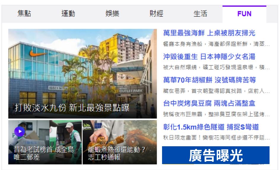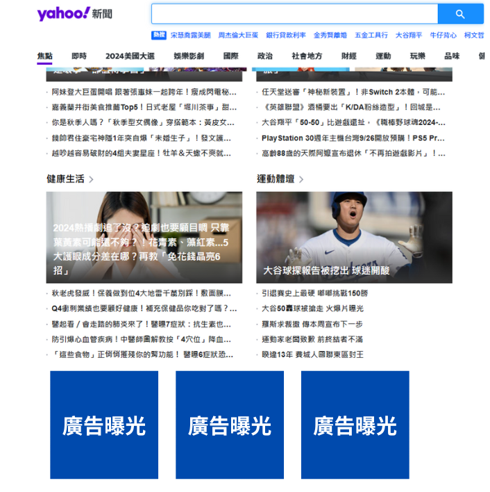 2024 年,Yahoo 推出全新的 Flow Ad,是一種直接連結用戶瀏覽行為的內容型廣告。無論是純「文字」還是「圖+文」的呈現方式,Flow Ad 能將廣告自然融入內容中,不打擾用戶閱讀,同時有效提升品牌曝光率。目前 Yahoo Flow Ad 提供三種主要的廣告版位,涵蓋 PC 版及行動版網頁,為品牌主帶來更多的曝光機會: