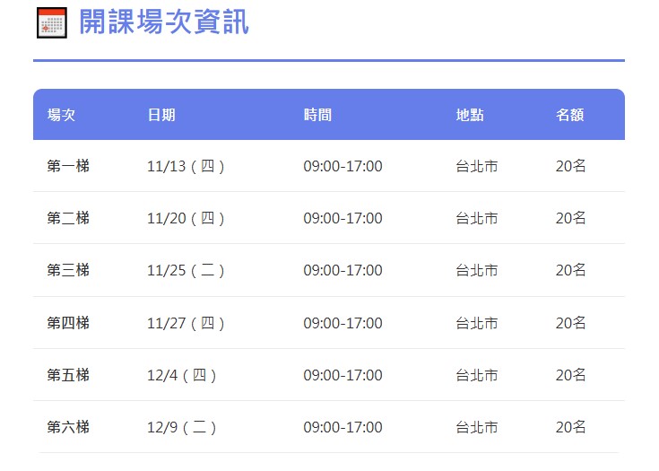2.每統編限1位報名,並須擇一場次報名,請儘早預約!