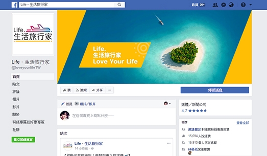 在一次演講中認識了生洋網路負責社群行銷的主管,對其演講內容印象深刻,再加上公司網路關鍵字也是由生洋的團隊操做,因而很放心的將新成立的粉絲團交由其代操管理。在配合的過程中,生洋不時的提出建議,讓【Life‧生活旅行家】在3個月就達到預期的粉絲人數;而文案及素材也不斷的精進及優化,讓粉絲團保持良好的水準、粉絲數穩定成長,真的非常感謝生洋團隊的大力協助!