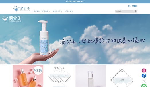 起初只有販售單一產品,且官網頁面較簡略,在網路口碑搜尋的結果也不像大品牌這麼多,希望可以透過生洋網路的協助,給予全方位的內容與廣告規劃,包括官網頁面、廣告素材與文案的建議,讓大家認識滴分子。透過網路下單體驗明星商品「溫和清潔」的潔顏露,開啟屬於每個人的保養小儀式。